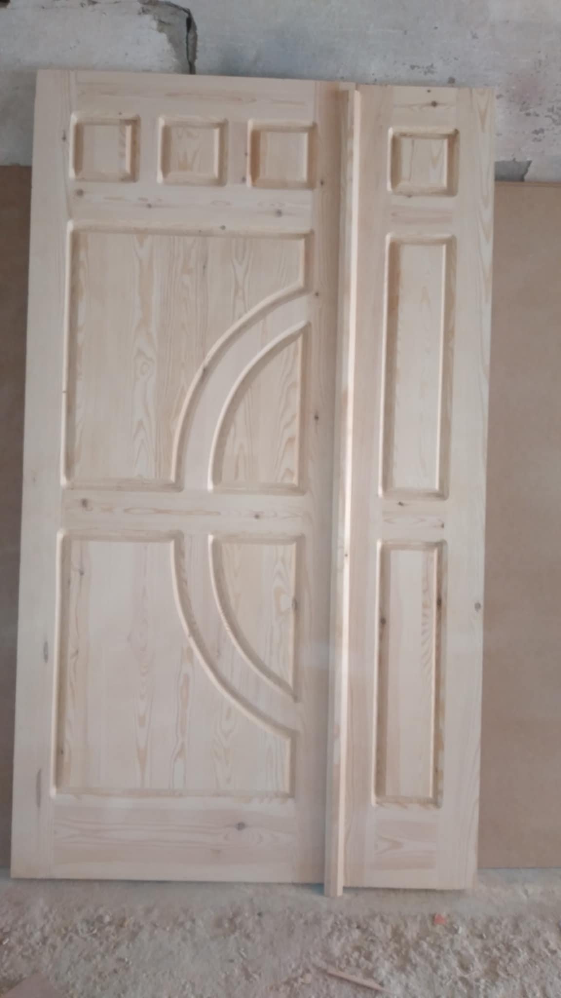 هذي الباب كانت مستعملة من قبل، وتم تجديدها بحيث صار ليه تصميم كلاسيكي وأنيق. الآن متوفرة للبيع، بألوان خشب فاتحة مع نقشات منحنية ومربعات بارزة. مثالية للي يدوروا على باب متين بأسلوب تقليدي وفخم!